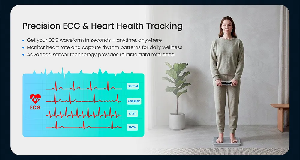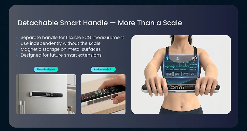 LED oculto: LED brillante con dígitos grandes para mediciones. Más preciso: Siente el peso de un vaso de agua Más usuarios: Administrar más de 10 usuarios Acceso a la ecología del hogar inteligente Tuya: Proporciona escenas inteligentes con otros dis...