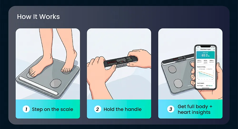 Más inteligente: Mide y gestiona tus datos corporales en la APP Hapi Health Diseño exquisito / integrado: Vidrio ITO, moldura integrada. Más preciso: Haz que tú y tu familia sean más saludables Soporte BLE 5,0: Bajo consumo de energía, respetuoso con...